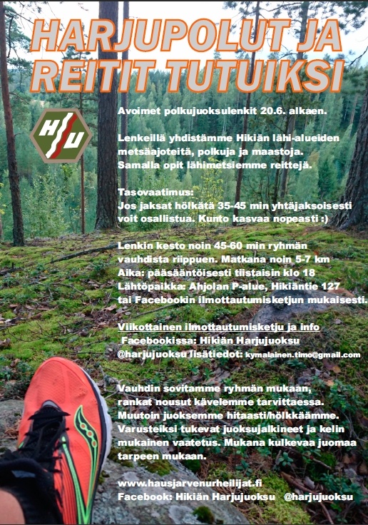 Juoksukoulun jatkeeksi tullaan järjestämään viikoittaiset yhteislenkit Hikiän lähimaastoissa (polkujuoksu/hölkkä). Soveltuu myös vähemmän juosseille. Yhteislenkit sisältyvät seuran jäsenmaksuun. Aloitus kesäkuussa.