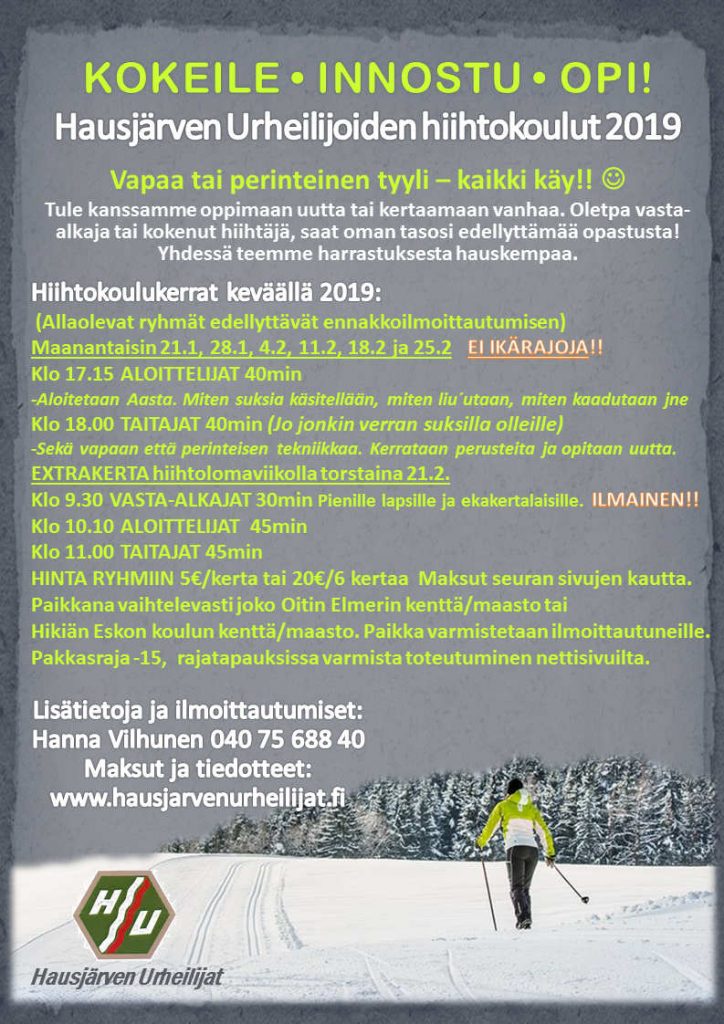 Aika on kahden parhaan hiihtokerran yhteenlaskettu aika. Jos aika on suluissa se on yhden hiihtokerran aika.